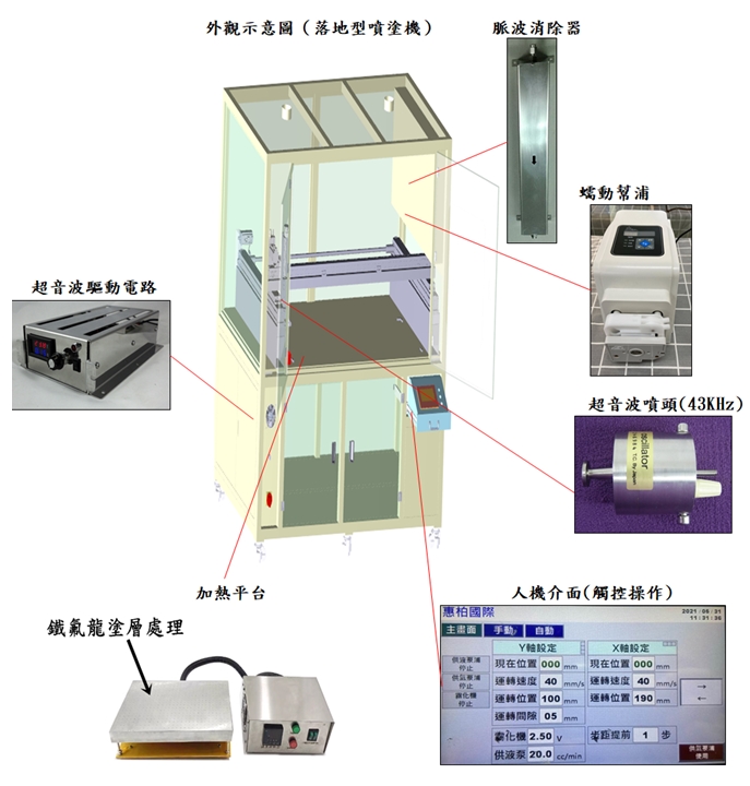 7. 塗佈方式:X及Y軸同時移動採龍門式結構,噴頭向下噴